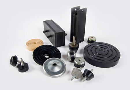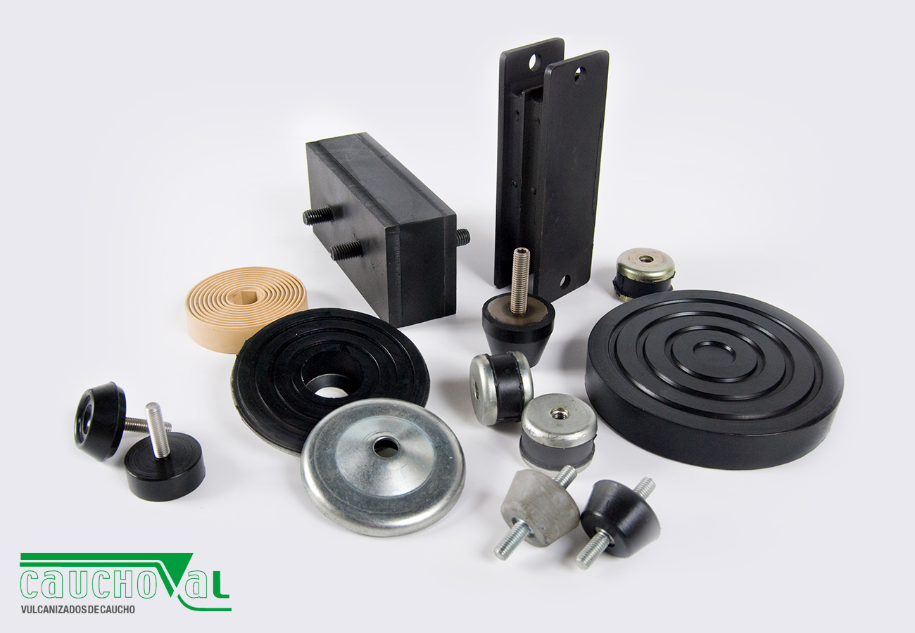 Artículos vulcanizados y rectificados de caucho desde 25 shores hasta 80 shores de diferentes formas y tamaños, diseñados especialmente para reducir las vibraciones.