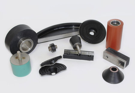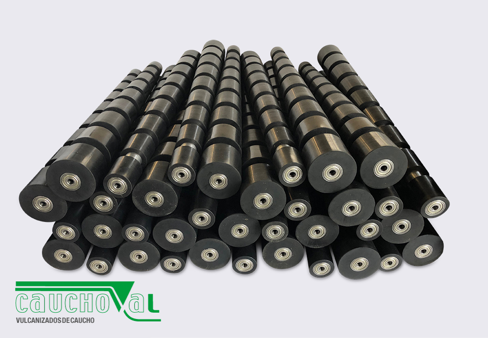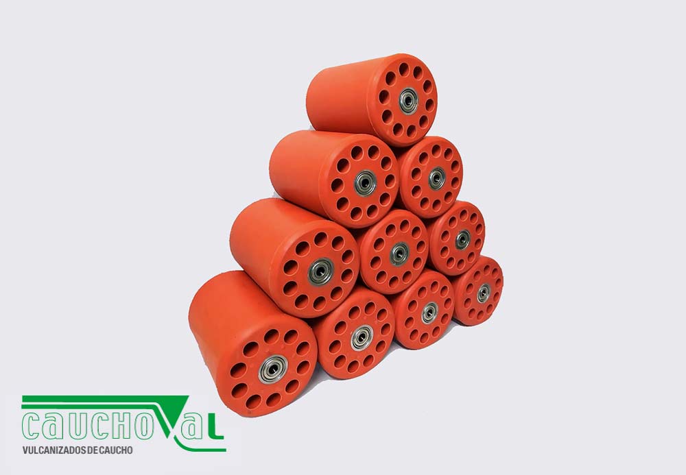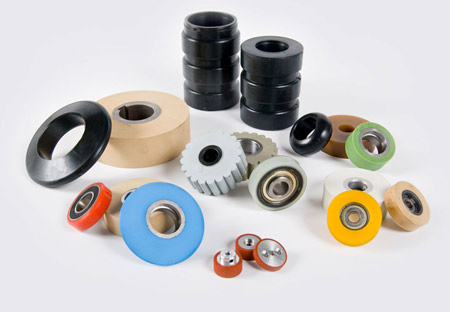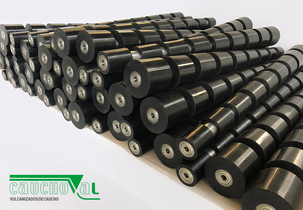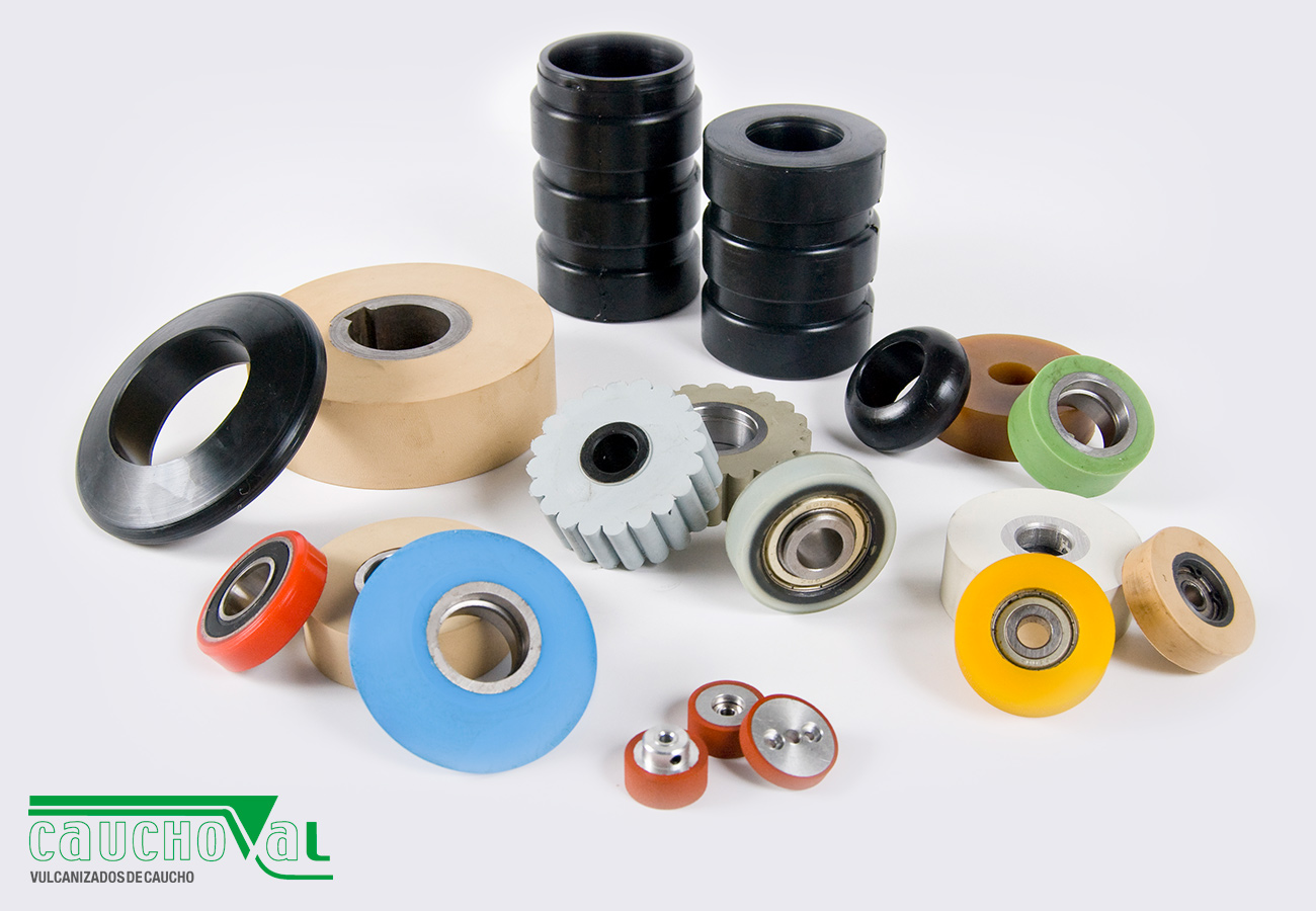 Artículos de caucho y silicona de todas las durezas y colores como poleas, recubrimiento de rodillos, roldanas, rodamientos engomados, ruedas arrastre, rodillos curvadores...