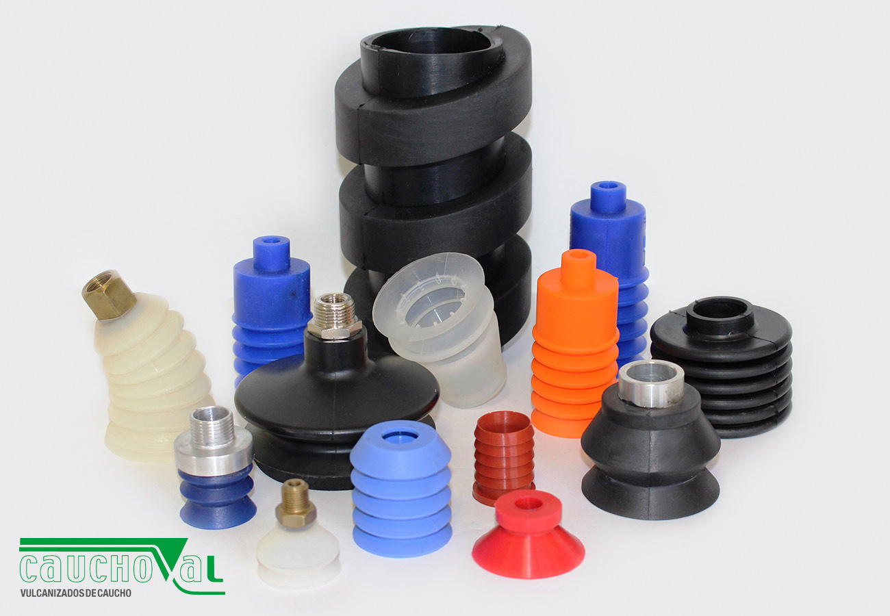 Ventosas: Con capacidad de absorción por vacío, fabricadas en caucho y silicona con un rango de dureza desde 30 a 90 shores personalizadas a las necesidades de cada uno de nuestros clientes.